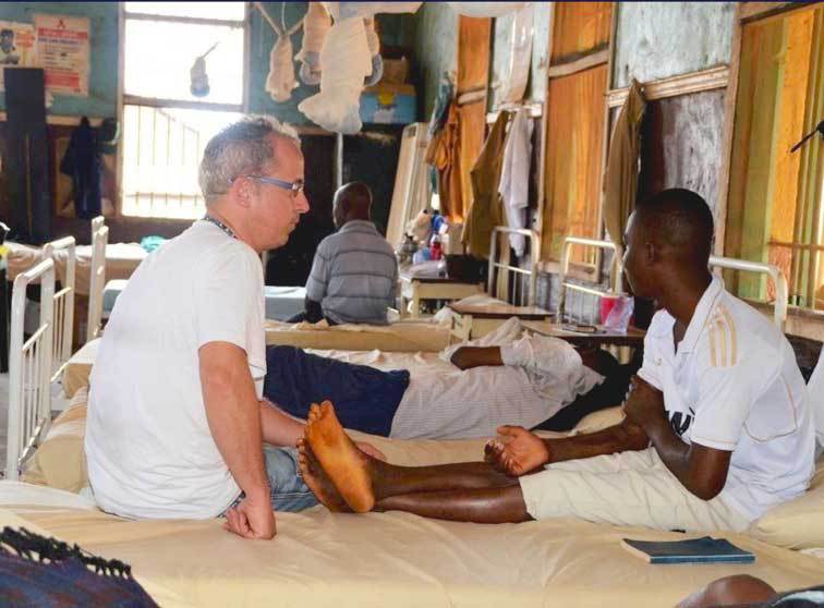 Salesianerbruder Lothar Wagner, Leiter des Kinderschutzzentrums Don Bosco Fambul, besucht Kranke.