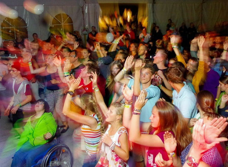 Der Samstag, der war dann nass. Zumindest ab den Konzerten am Abend. Für die Heilige Messe und die Workshops hatte das Wetter noch gehalten. Das Angebot der Workshops wurde am Festival-Wochenende wie immer gut genutzt. Diese wurden hauptsächlich von den Mönchen der Sankt Johannesgemeinschaft, die ihr Kloster gleich neben dem Festivalgelände haben, abgehalten. Die Jugendlichen konnten sich aussuchen, ob sie zum Beispiel über Freundschaft, Glück & Sehnsucht oder über die Schönheit philosophieren wollten. Ein frisch verheiratetes Ehepaar sprach über das Thema "Warum warten bis zur Ehe" und wurde von den Teilnehmern noch nach der Workshopstunde lange belagert. Daniel, 17, der aus Dornbirn angereist war, sagt: "Es war total interessant, wie offen das Ehepaar mit uns über dieses Thema und ihre Beziehung zueinander geredet hat. Allein diese Offenheit uns gegenüber habe ich echt bemerkenswert gefunden."