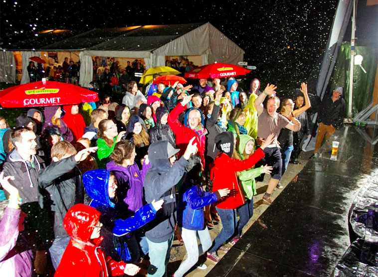Mit Stolz zeigten die beiden jungen Mädels den Schlamm, der bis über die Knie an ihren Beinen klebte. Von oben bis unten total durchnässt, aber eine unglaubliche Freude in ihren Augen. Der Regen am Samstag, 23. August 2014, des KEY2LIFE Wochenendes hatte dazu beigetragen, dass das katholische Festival nun den Titel "echtes Rockfestival" tragen darf.