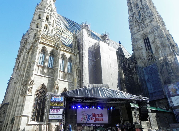 Nach ihrem farbenfrohen Glaubensmarsch entlang der Ringstraße feierten Christen unterschiedlichster Konfessionen ein "Fest für Jesus" auf dem Stephansplatz.