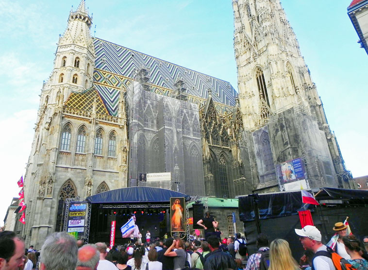 In Vertretung des Wiener Erzbischofs nahm Generalvikar Nikolaus Krasa am "Fest für Jesus" auf dem Stephansplatz teil. "Ich bin froh, dass so ein Glaubenszeugnis in unserer Stadt möglich ist und wir nicht um Kopf und Kragen fürchten müssen, wie viele Christen in dieser Welt", sagte der Generalvikar der Erzdiözese Wien.