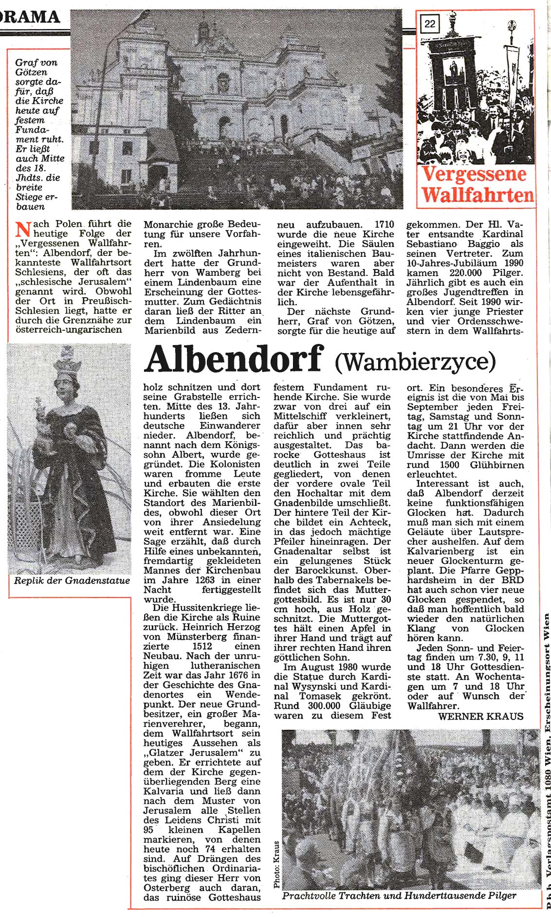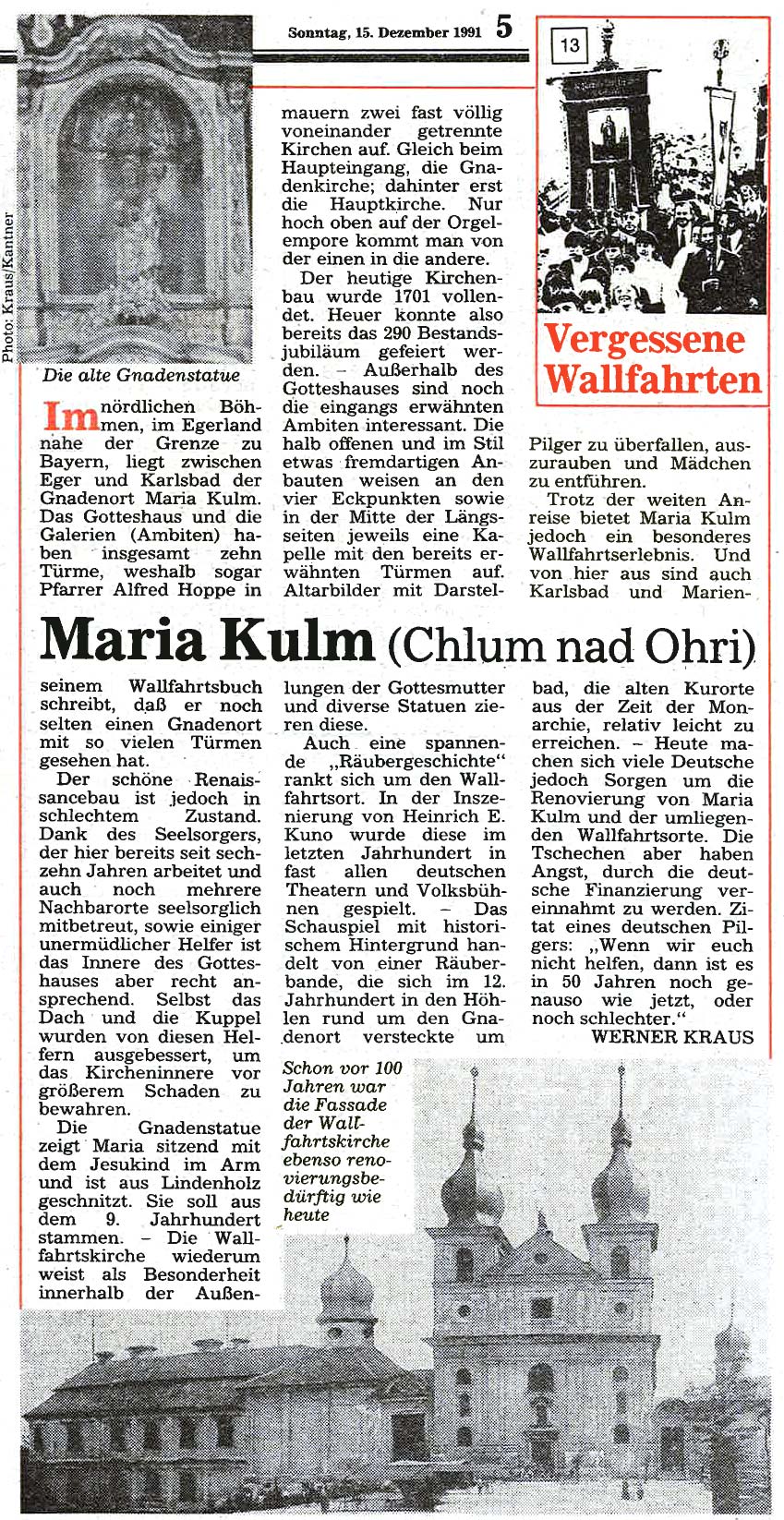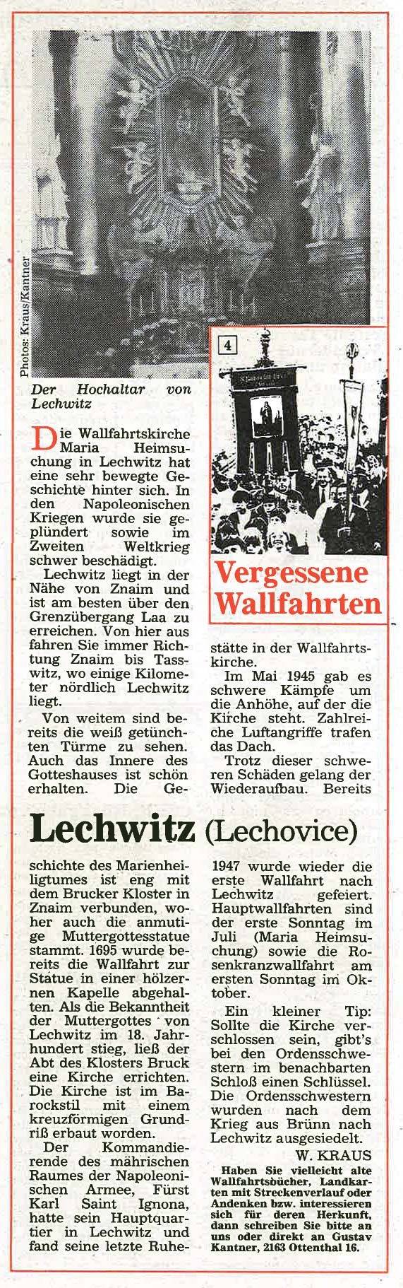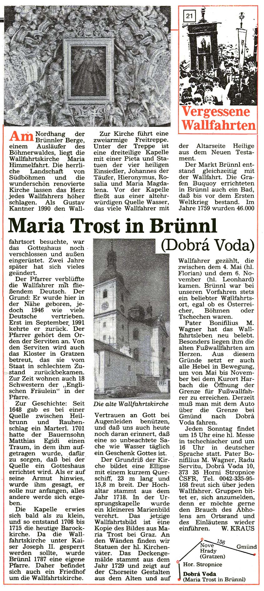 Immer schon interessierte sich der Landwirt Gustav Kantner aus Ottenthal im Weinviertel für die fast vergessenen Wallfahrtsorte jenseits der streng bewachten Grenze und wurde später zum leidenschaftlichen "Wallfahrtsreisenden". Ab Mai 1991 begann er für die damalige "Wiener KirchenZeitung" mit Unterstützung von Werner Kraus diese "Vergessenen Wallfahrtsorte"wieder vorzustellen – mit oft überraschenden Ergebnissen.