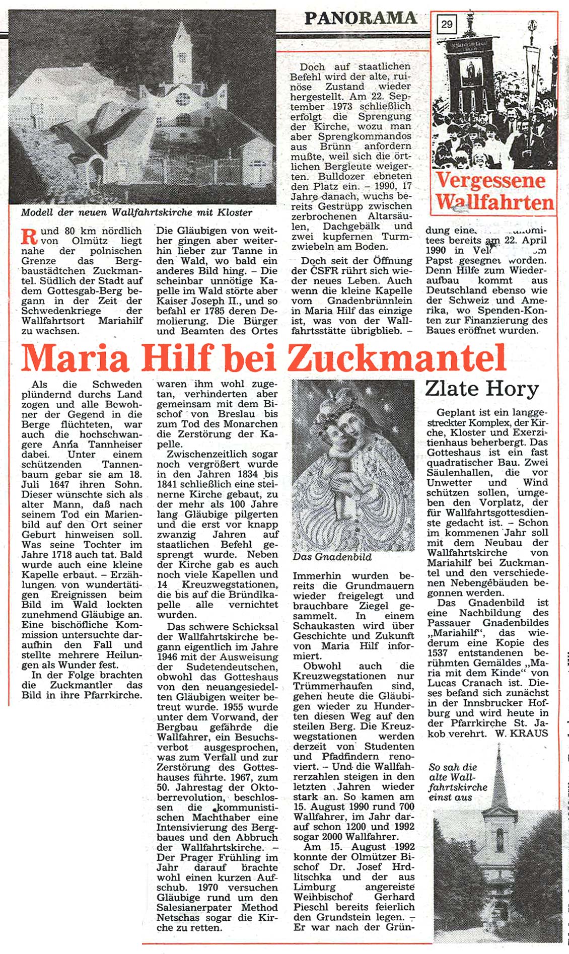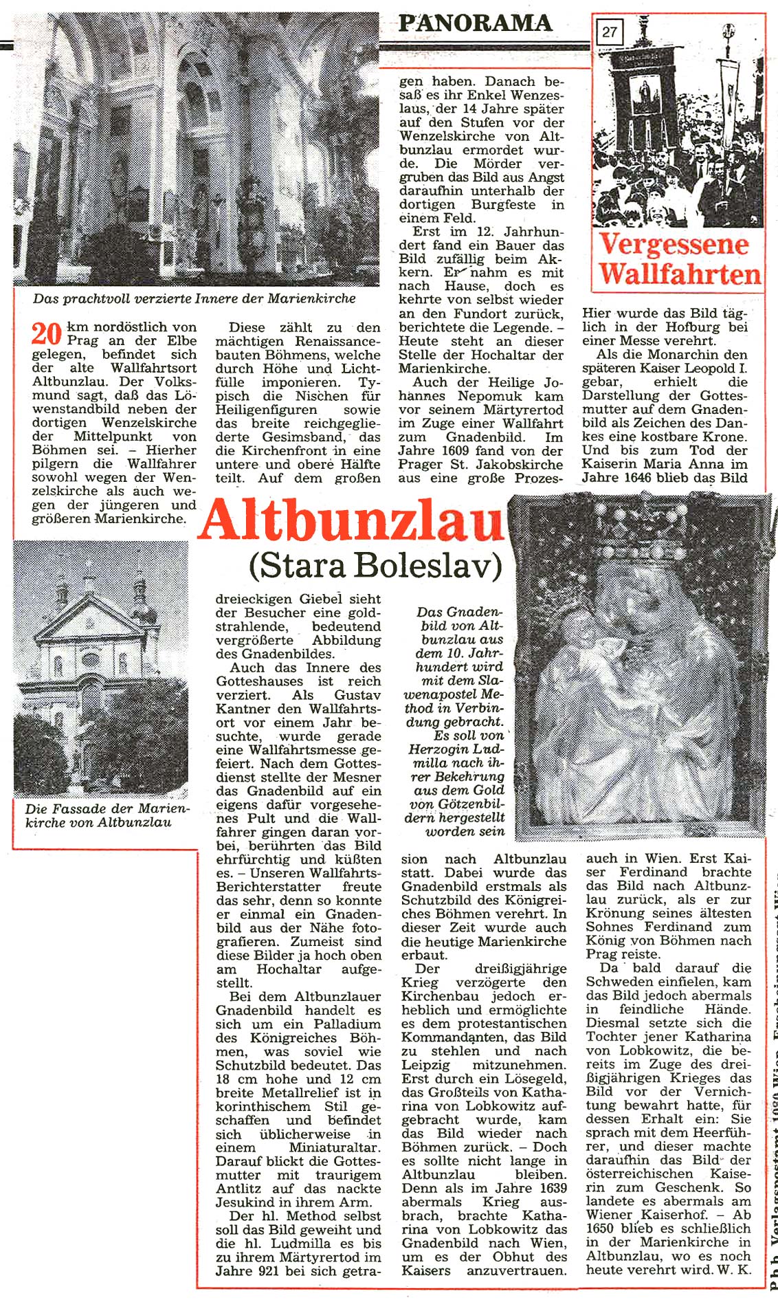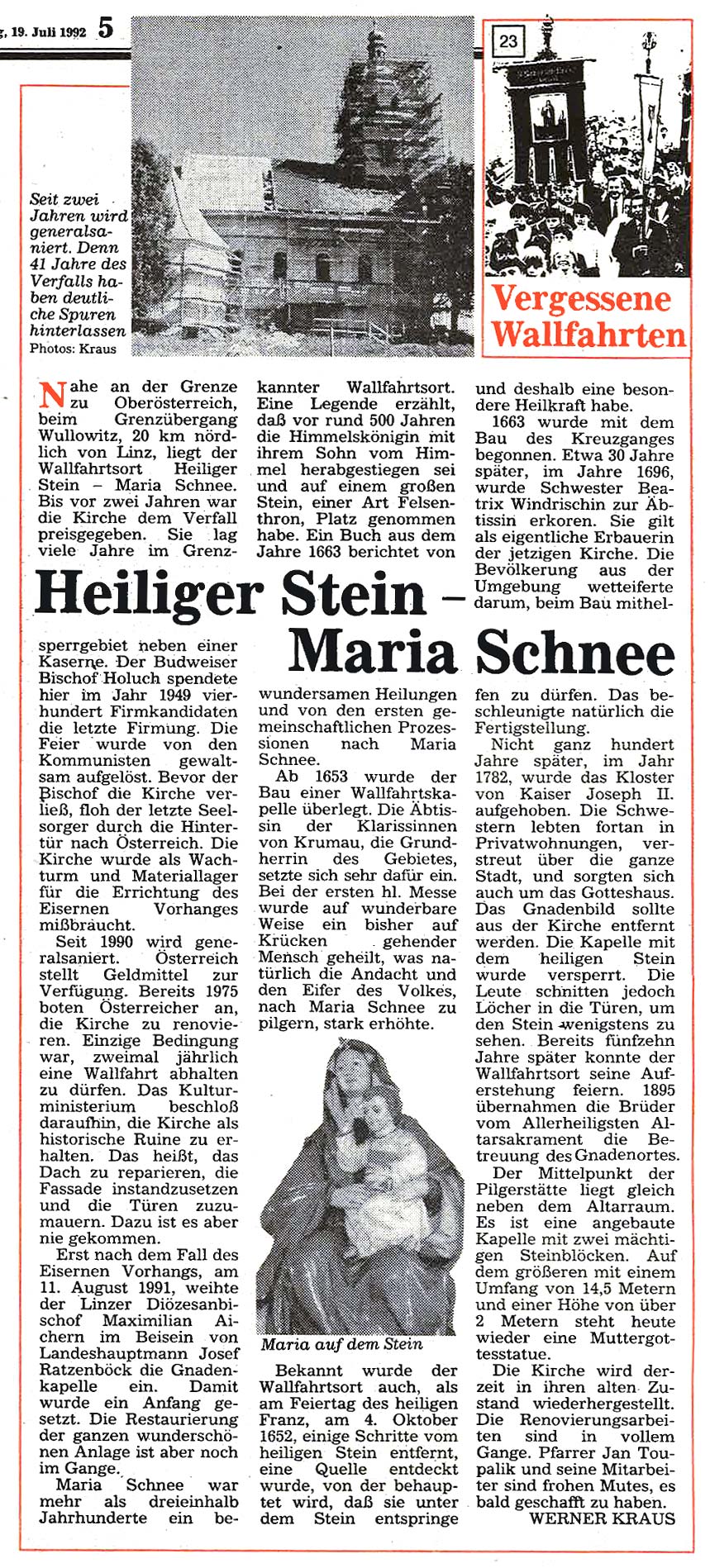 25 Jahre nach dem Fall des Eisernen Vorhangs stellt "Der Sonntag" die Serie "Vergessene Wallfahrten" aus den 1990er Jahren als Faksimile ins Internet – mit der Bitte um Updates.