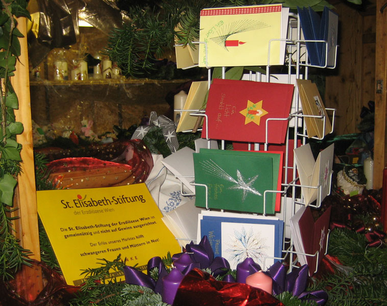 Kerzen, kleine Engelchen, Seidenmalerei und liebevoll bestickte Karten liegen im Marktstand schön aufgereiht nebeneinander. Auch in diesem Jahr kann man am Adventmarkt der St. Elisabeth Stiftung wieder Geschenke entdecken und gleichzeitig Gutes tun: denn der Erlös kommt schwangeren Frauen und Müttern in Not zugute. „Die St. Elisabeth Stiftung der Erzdiözese Wien kümmert sich um Frauen, die während der Schwangerschaft in eine Notsituation geraten sind und um Mütter und Kinder die von Obdachlosigkeit bedroht sind“, erzählt Geschäftsführer Lukas Pohl.