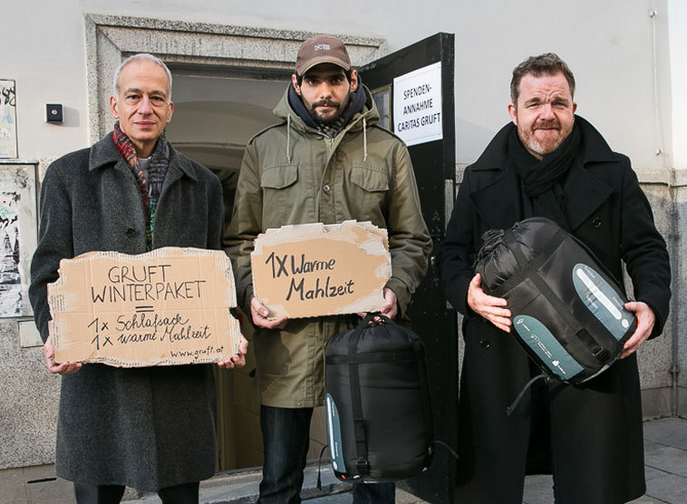 Cornelius Obonya berichtete, dass er Streetworker der "Gruft" bei ihrer Arbeit begleitet habe. "Die Gruft und das Streetwork zu unterstützen, ist mir ein Anliegen, da ich der Meinung bin, niemand - egal welcher Nationalität - lebt freiwillig auf der Straße." 50 Euro seien wenig für das Ziel, dass Obdachlose Nächte gesund überstehen können und überleben. "Es ist schwer zuzugeben, dass man Hilfe braucht", so Obonya zu seinen Erfahrungen beim Streetwork.