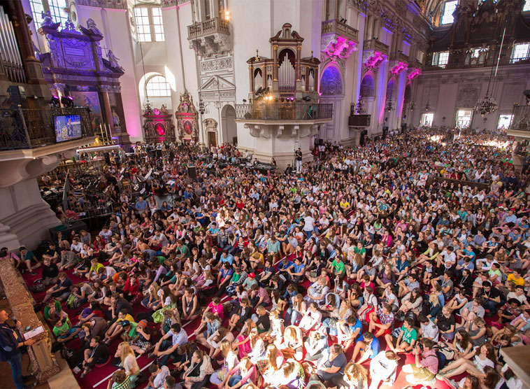 Das Antlitz der Salzburger Altstadt kann jung und strahlend sein. Auch 2015, findet am Pfingstwochenende, von Freitag 22., bis Montag 25. Mai, wieder das Fest der Jugend statt. Diesmal werden mehr als 7.000 "teens und tweens" aus aller Welt erwartet. Der Salzburger Dom wird aus allen Nähten platzen, was für die Veranstalter aber "Kein Problem" ist. Hauptorganisator Georg Mayr-Melnhof erklärt: "Wir haben eine riesengroße Freude mit all diesen Jugendlichen, die kommen, um das Fest des Heiligen Geistes mit uns zu feiern! Wir ziehen den Dom hinaus auf die Plätze der Altstadt: der Domplatz wird überdacht. Wir wollen alle Salzburger und alle Gäste der Stadt einladen, Pfingsten mit uns zu feiern!"