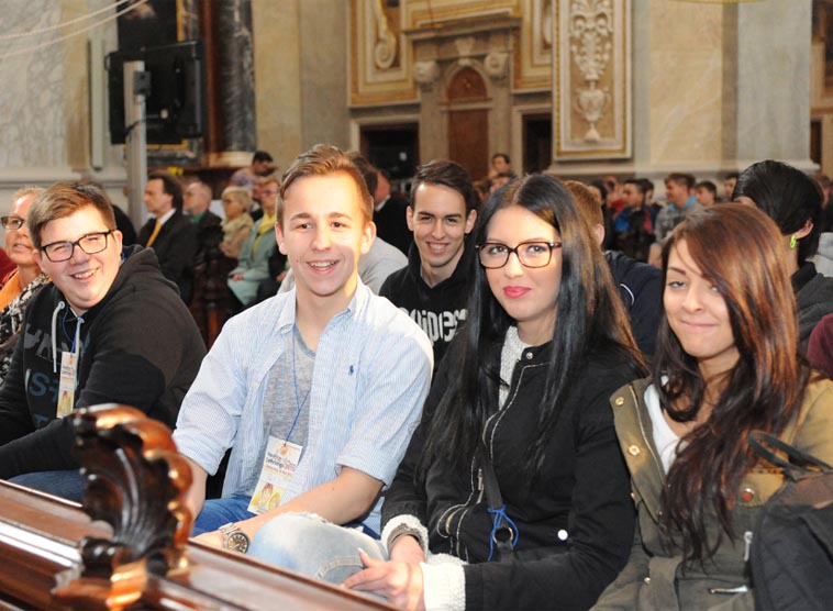 Höhepunkte des "Tags des Lehrlings" in Stift Klosterneuburg waren der Wortgottesdienst mit Abtprimas Bernhard Backovsky und den mehr als 400 Jugendlichen aus 22 Berufsschulen in Niederösterreich und Wien sowie eine Grußbotschaft der Lehrlinge an Papst Franziskus.