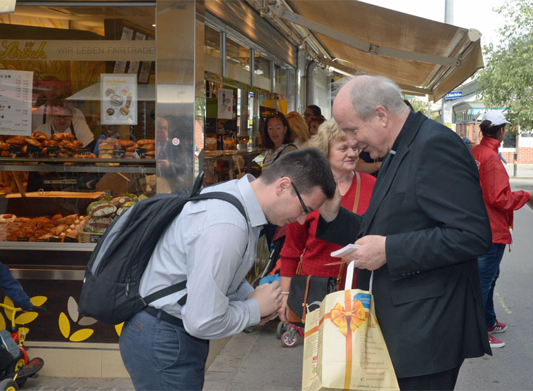 „Die Menschen waren erstaunt, in der Früh unseren Erzbischof zu sehen, und einen Gruß sowie ein paar gute Worte am Beginn des Tages mit auf den Weg zu bekommen“, sagt Dechant Thomas J. Lambrichs: „So einfach und doch beeindruckend kann es sein, mit unterschiedlichen Leuten ins Gespräch zu kommen.“