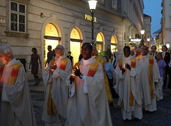 Am Ende der Messe formierten sich die Teilnehmer zu einer Lichterprozession, die vom Dom über den Stephansplatz ins Erzbischöfliche Palais führte
