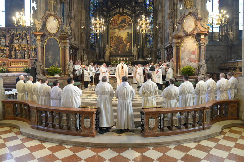 "Ich höre nicht auf zu danken, dass ihr Ja gesagt habt zu diesem Dienst. Immerhin waren das neben dem Beruf vier Jahre Ausbildung. Ich danke auch euren Ehefrauen, die das mitgetragen haben und mittragen werden. Ich höre nicht auf für euch zu danken, wenn ich in meinen Gebeten an euch denke", so Kardinal Christoph Schönborn zu den neuen Diakonen.