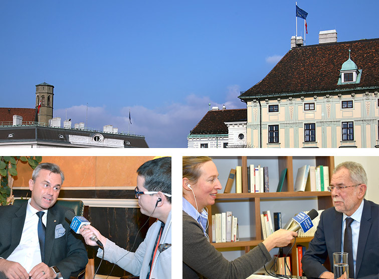 Die Präsidentschaftskandidaten in Gesprächen mit unseren Redakteuren Georg Gatnar und Stefanie Jeller.