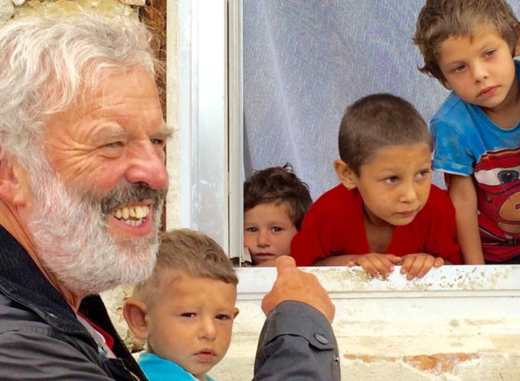Pater Georg Sporschill mit Mariuca, sie ist siebzehn und hat vier Kinder. Sie sind allein zuhause, die Mutter bettelt im Dorf, der Vater ist bei den Schafen.