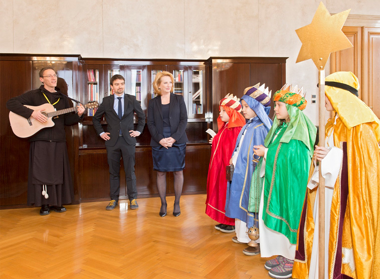 Sternsinger statteten am Mittwoch, 4. Jänner 2017 hochrangigen Politikern in Wien einen Besuch ab. Kinder aus der Pfarre Maria Lanzendorf brachten Nationalratspräsidentin Doris Bures und ÖVP-Klubobmann Reinhold Lopatka den Sternsingersegen ins Parlament. Eine Gruppe aus der Erzdiözese Wien besuchte Bürgermeister Michael Häupl im Rathaus. Diese Kinder seien ein wichtiger Teil der Zivilgesellschaft, die mit ihrem Einsatz eine "schöne Tradition" lebendig hielten und die Welt ein Stück besser machten", sagte Bures. Es freue sie sehr, "dass Kinder Jahr für Jahr rund 85.000 Sternsinger für Frieden und Gerechtigkeit in der Welt engagieren".