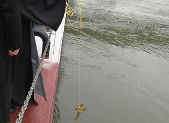 Mit dem Kreuz wurden der Donaukanal und alle Gewässer, die Anwesenden und die ganze Stadt Wien gesegnet.