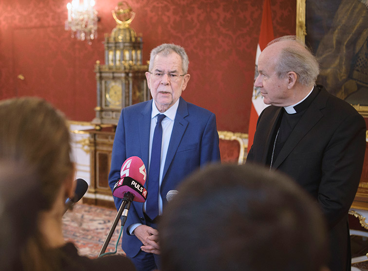 Die Vatikanhymne im Hintergrund war nicht zufällig gewählt. Bundespräsident Alexander Van der Bellen bat Kardinal Christoph Schönborn um seine Fürsprache für einen Besuch bei Papst Franziskus.