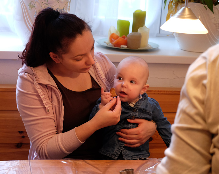 Sticken hat Luttenberger bereits als Kind in Rumänien erlernt, im Haushaltsunterricht. „Wenn man das erste Mal hierherkommt, wird einem aber sowieso alles gezeigt – man kann es hier lernen“, sagt sie über die Kreativwerkstatt: „Das macht Spaß. Man sitzt zusammen, die Kinder spielen. Wir bekommen Kinderbetreuung für die drei Stunden, wo wir da sind.“ Als Luttenberger erstmals Kontakt mit der Stiftung aufnahm, war sie schwanger. „Wir waren zusammen mit ihrem Papa“, erzählt Luttenberger über ihre Tochter. „Dann haben wir sehr oft gestritten.“ Gewalttätig sei es zugegangen. „Dann bin ich weggegangen. Eine Freundin hat mir dazu geraten, ein Mutter-Kind-Haus aufzusuchen. Ich wusste gar nicht, dass es sowas gibt. Dann bin ich zu der St- Elisabeth-Stiftung gekommen und wurde in einem der Häuser aufgenommen.“