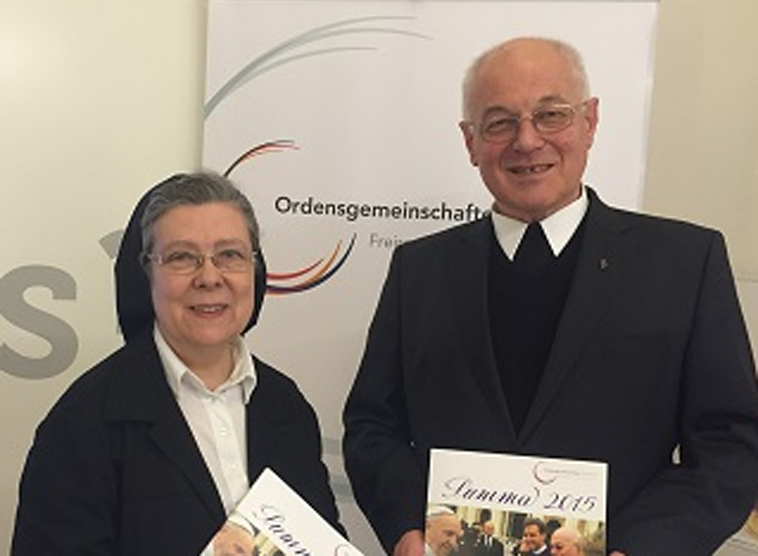 Sr. Beatrix Mayrhofer und Abtpräses Christian Haidinger mit Wünschen zum Weltgebetstag.
