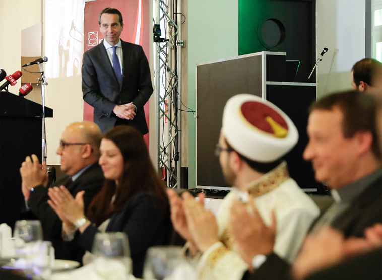 IGGiÖ-Präsident Ibrahim Olgun konnte zum Fastenbrechen u.a. Bundeskanzler Christian Kern, Staatssekretärin Muna Duzdar sowie zahlreiche hochrangige Vertreter der Religionen begrüßen; beispielsweise Gemeinderabbiner Schlomo Hofmeister und Landessuperintendent Thomas Hennefeld, der Vorsitzende des Ökumenischen Rates der Kirchen in Österreich.
