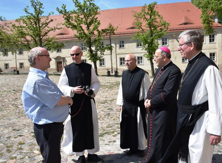 Die Wiederansiedlung von Zisterziensermönchen im ehemaligen brandenburgischen Kloster Neuzelle kommt voran. "Rechtzeitig zur Diözesanwallfahrt" am 3. September werde sich "eine kleine Vorhut von vier Zisterziensermönchen aus dem österreichischen Stift Heiligenkreuz im katholischen Pfarrhaus von Neuzelle niederlassen", kündigte die Diözese Görlitz am Mittwoch, 7. Juni 2017 an. Darauf hätten sich der Görlitzer Bischof Wolfgang Ipolt und der Abt des niederösterreichischen Klosters, Maximilian Heim, bei einem Treffen Mitte Mai geeinigt. Ipolt sprach von einem "frohmachenden Zeichen" für seine Diözese.