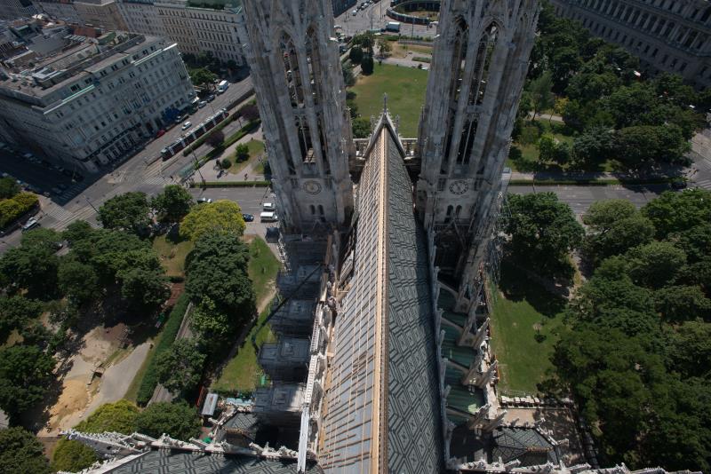 Bei der umfangreichen Renovierung der Wiener Votivkirche ist eine weitere Etappe geschafft: Am Dienstag, 20. Juni 2017, wurde die Sanierung des Vierungsturms mit dem Aufsetzen des frisch vergoldeten Kreuzes abgeschlossen. Die Generalsanierung des neugotischen Baus ist seit 2001 im Gang und soll im Jahr 2023 beendet sein, sagte Harald Gnilsen, Baudirektor der Erzdiözese Wien, vor Journalisten.