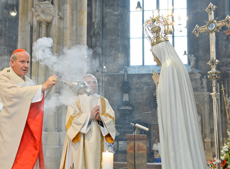 Kardinal Christoph Schönborn inzensiert die Fatimastatue.