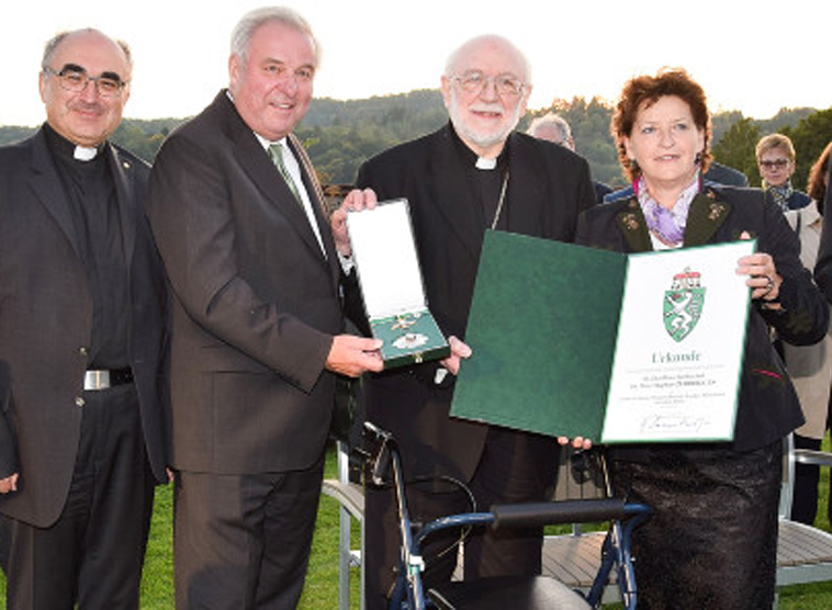 Diözesanbischof Wilhelm Krautwaschl, Landeshauptmann Hermann Schützenhöfer, Erzbischof Nuntius Peter Zurbriggen, Landesrätin Ursula Lackner bei der Überreichung des Großen Goldenen Ehrenzeichens mit dem Stern.