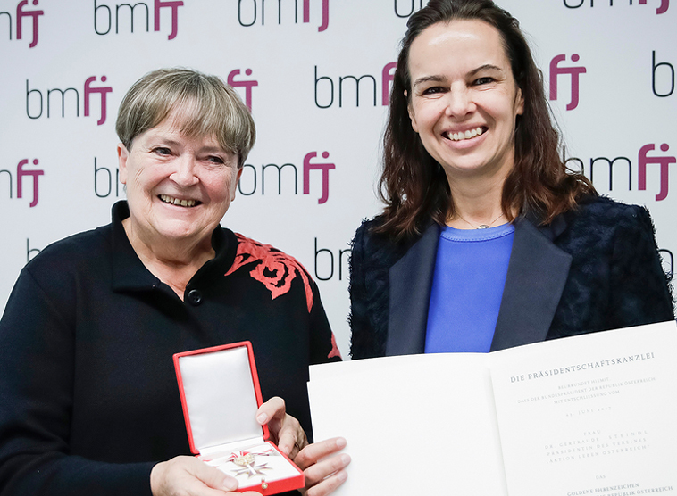 aktion leben-Präsidentin Gertraude Steindl erhielt das Goldene Ehrenzeichen für Verdienste um die Republik Österreich.