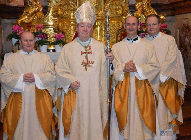Von links nach rechts: Novizenmeister und Klerikerdirektor Albert Maczka, Bischof Markus Bernt Eidsvig,Thaddäus Ploner, Assistent des Kämmerers Anton Höslinger.