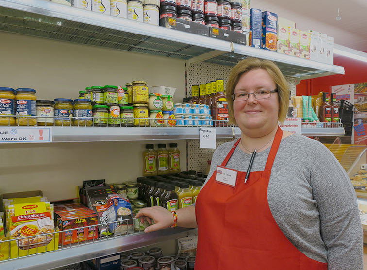 In den Verkaufskästen sehe ich das Brot und Gebäck von gestern, Gemüse und Obst mit kleinen Schrammen und Konserven. Sie sind mit wenigen Cent ausgepreist. Marktleiterin Gerti Ulrich schildert mir: „Wir haben zwischen zehn und achtzehn Lieferanten, die wir täglich anfahren, darunter mehrere Großbäcker.“