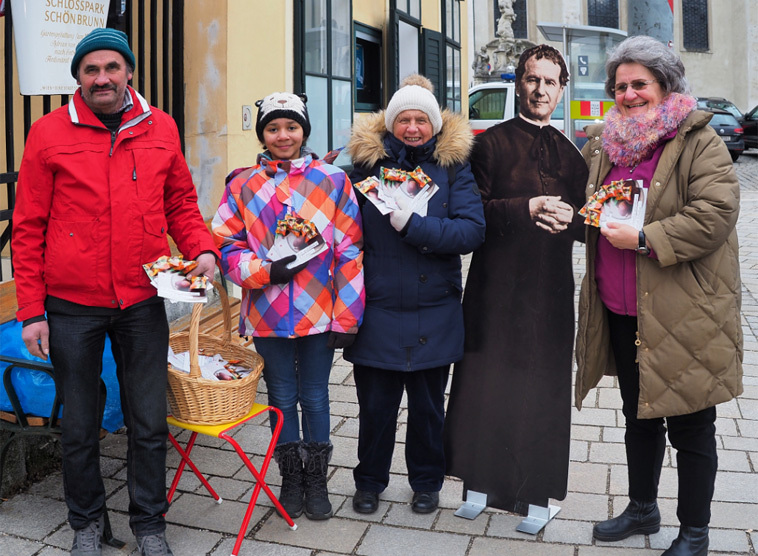 Die Botschaft Don Boscos brachte die Don Bosco Familie unter dem Motto „Wunder geschehen durch Teilen “ auch in die Öffentlichkeit. In Erinnerung an das Maroniwunder Don Boscos im Jahr 1849 wurden 5.200 Schokolademaroni verteilt. Don Bosco hatte den Jugendlichen in seinem Haus Maroni versprochen. Für mehrere hundert Burschen waren aber nur drei Kilo Maroni im Korb. Don Bosco meinte dazu optimistisch: „Jetzt teilen wir einmal aus.“ Und der Korb wurde nicht leer. Die Maroni reichten für alle.