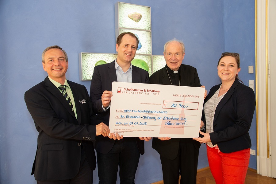 Spendenübergabe durch Kabarettist und Religionslehrer Stefan Haider für St. Elisabeth-Stiftung der Erzdiözese Wien