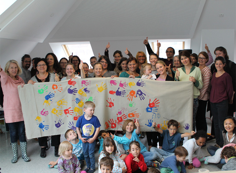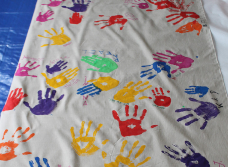 Es ging darum mittels eines Handabdrucks auf einer Stoffbahn ein Zeichen dafür zu setzen, wie wichtig Ein-Eltern-Familien in unserer Gesellschaft sind.