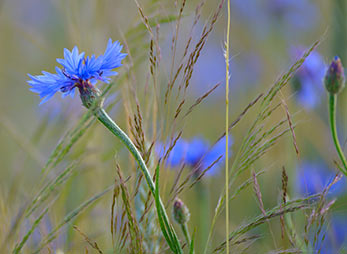 Immer beliebter: Sträuße und Gestecke aus Sommerblumen. Sehr harmonisch wirkt eine Kombination aus Kornblumen, Kamille und Margeriten. Kornblumen stehen für Treue.