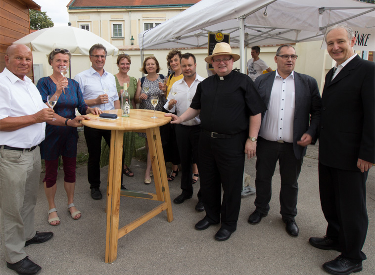 Im Anschluss waren alle bei bestem Wetter zu Begegnung bei Speis und Trank am Kirchenplatz eingeladen. Am Nachmittag fand schließlich noch eine Kirchenführung mit Turmbesteigung statt sowie der erste Baum im neu gestalteten Kirchengarten wurde gepflanzt, für den die Ministrantinnen der Pfarre die Patenschaft übernahmen. Die Segnung der Eiche erfolgte durch den derzeitigen Pottendorfer Pfarrmoderator Tamas Szomszéd, der die Pfarre im Sommer verlassen wird, und den künftigen Pfarrmoderator und Dechant Josef Lippert.