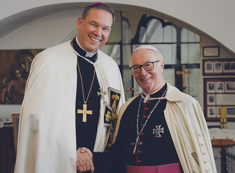 Hochmeister P. Frank Bayard OT mit Vorgänger Althochmeister P. Bruno Platter OT