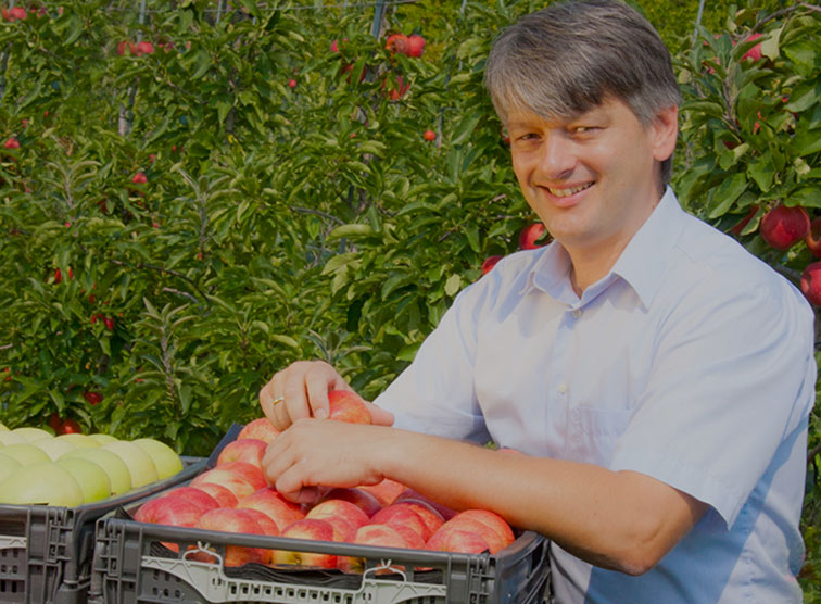 „Das meiste sind Äpfel. Wir haben in Wien auch ein paar Hektar Kirschen“, erzählt Güterdirektor Bernhard Schabbauer. „Beide wachsen am Spalier, Kennzeichen eines klassischen, konventionellen Obstanbaus. Zwischen den Obstbaumreihen ist drei bis vier Meter, zwischen den Bäumen ein Meter Platz. Damit können wir die Äpfel leichter ernten.“