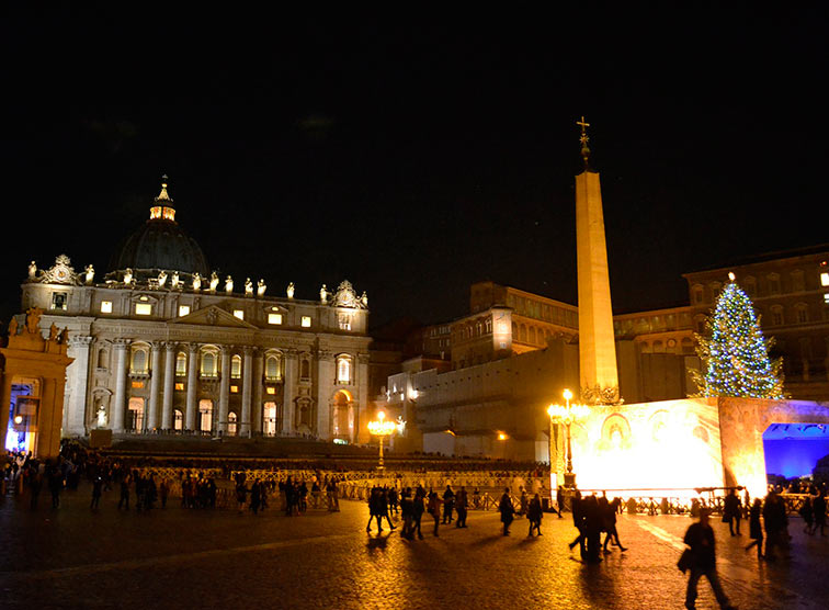 Papst Franziskus hat die Ankunft von Christbaum und Krippe im Vatikan zwei Wochen vorverlegt, was sicherlich einer Sehnsucht der Pilger entsprach. In früheren Jahren wurde der große Christbaum am Freitag vor Weihnachten zum ersten Mal beleuchtet und strahlte dann bis Mariä Lichtmess am 2. Februar sein warmes Licht auf die Krippe und den ganzen weiten Platz.