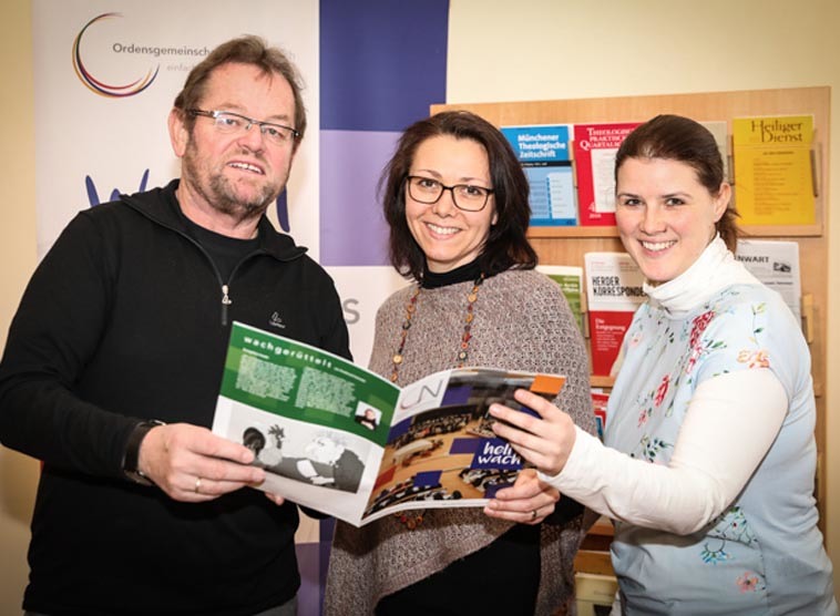 Foto v.l.n.r.: Ferdinand Kaineder (Leiter des Medienbüros der Ordensgemeinschaften Österreich), Karin Mayer (Leiterin des Referats für die Kulturgüter der Orden) und Irene Kubiska-Scharl (Fachreferentin für Archive und Bibliotheken). (c) Magdalena Schauer/Ordensgemeinschaften Österreich.
