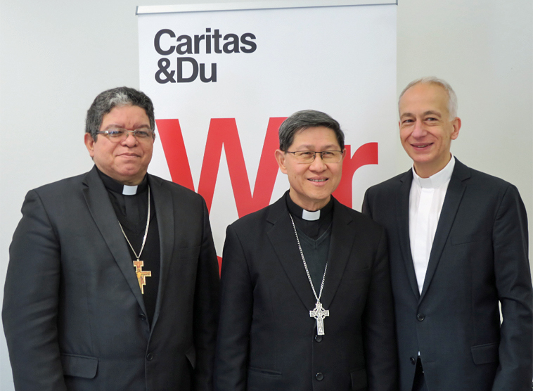 von links nach rechts: Erzbischof José Luis Azuaje Ayala, Präsident der Caritas Lateinamerika; Kardinal Luis Tagle, Präsident der Caritas Internationalis; Michael Landau, Präsident der Caritas Österreich.