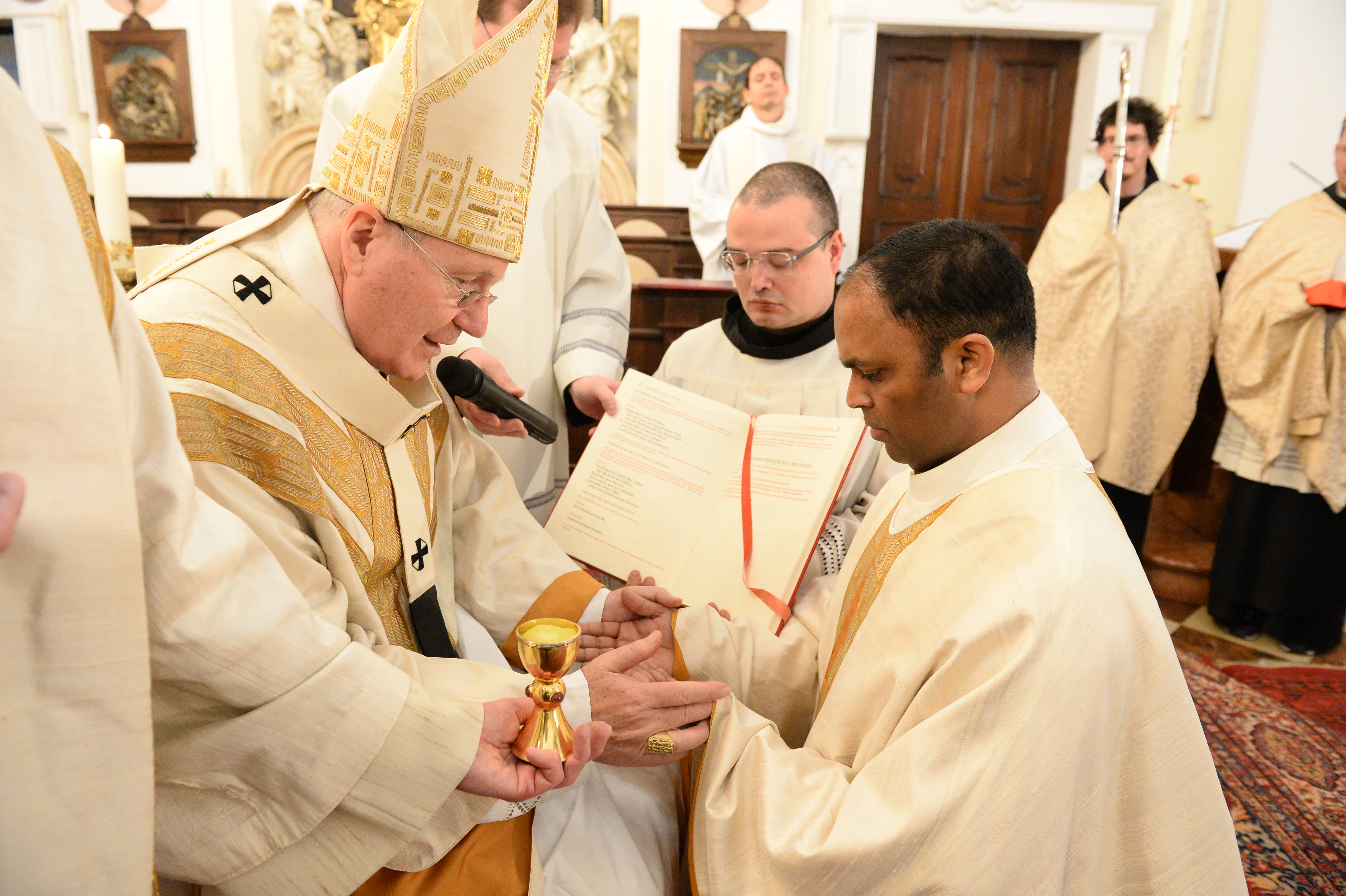 Kardinal Christoph Schönborn hat am Mittwoch den Provinzial der Barmherzigen Brüder in Österreich zum Priester geweiht. In der Klosterkirche des Ordens in Wien-Leopoldstadt legte er dem aus Indien stammenden P. Saji Mullankuzhy gemeinsam mit dem aus Bayern stammenden Joachim Heimerl die Hände auf. Bei der Feier anwesend war auch der Generalprior der Barmherzigen Brüder, der Spanier Jesus Etayo Arrondo. Die Primiz der beiden Neupriester findet am Freitag um 19 Uhr im Wiener Stephansdom statt.