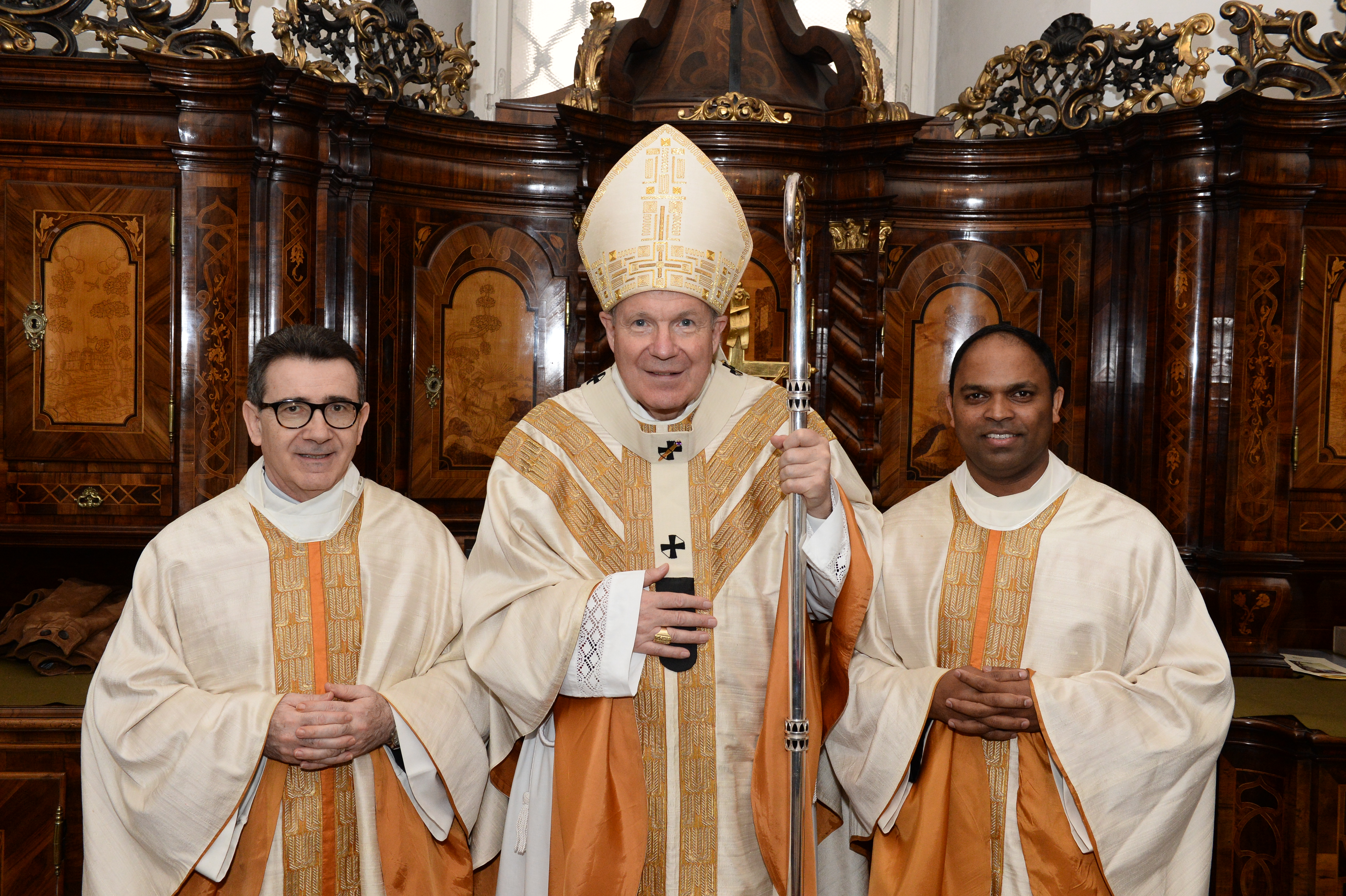 Saji Mullankuzhy wurde 1978 im indischen Bundesstaat Kerala geboren und trat nach der Schulausbildung bei den Salesianer Don Boscos 1999 in Chennai bei den Barmherzigen Brüdern ein. Nach dem Noviziat übersiedelte er 2004 nach Österreich, wo er 2008 an der Pflegeakademie der Barmherzigen Brüder Wien die Ausbildung zum diplomierten Gesundheits- und Krankenpfleger abschloss. Nach der feierlichen Profess in Indien 2008 arbeitete er bis 2014 als Krankenpfleger im Linzer Spital seines Ordens und studierte in Linz und Heiligenkreuz Theologie. 2014 wurde er Prior des Wiener Konventes, 2018 Leiter der österreichischen Ordensprovinz. Der zweite Neupriester, Joachim Heimerl, ist studierter Germanist und Historiker. Der österreichischen Provinz der Barmherzigen Brüder, die auch Konvente und Einrichtungen in Ungarn, Tschechien und der Slowakei umfasst, gehören derzeit 33 Brüder mit feierlicher Profess, drei Brüder mit Einfacher Profess und zwei Oblaten an. Der Orden, der auf den heiligen Johannes von Gott (1495-1550) zurückgeht, beschäftigt in seinen Spitälern in den vier Staaten insgesamt rund 8.550 Mitarbeiter.