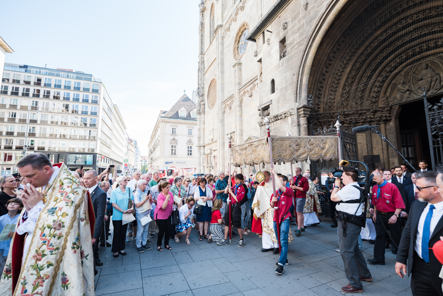 An der Prozession hatten u.a. der neue Nuntius in Wien, Erzbischof Pedro Lopez Quintana, der vormalige Kanzleramtsminister Gernot Blümel, der EU-Abgeordnete Lukas Mandl sowie der Vorsteher des 1. Wiener Bezirkes, Markus Figl, teilgenommen. Die Route führte im Anschluss an einen Festgottesdienst im Stephansdom zunächst über die Kärntnerstraße, vorbei an der Augustiner- und der Josefskirche zum Michaelerplatz. Von dort ging es weiter über den Kohlmarkt zur Peterskirche und wieder zum Stephansdom, wo die Prozession schließlich gegen Mittag endete.