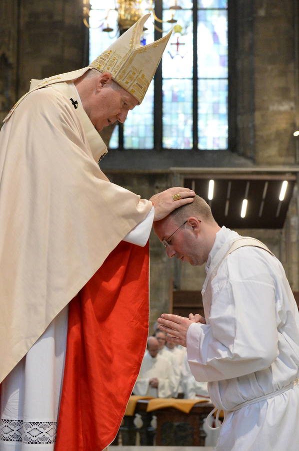 „Wenn ihr dem Herrn vertraut, dann bitte ich euch: vertraut auch den Menschen. Wenn wir den Menschen nicht vertrauen, dann vertrauen wir auch nicht dem Herrn! Wenn Ihr wisst, dass der Herr euch führt, dann könnt ihr auch vertrauen, dass der Herr die anderen führt.“, das hat Kardinal Christoph Schönborn bei der Priesterweihe heute Vormittag im Wiener Stephansdomden Weihekandidaten ans Herz gelegt. Der Kardinal weihte acht Männer aus vier Ländern – Russland, Polen, Bosnien-Herzegowina und Österreich - zu Priestern.