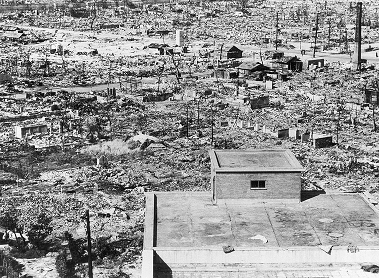 Auswirkungen der über Hiroshima abgeworfenen Atombombe: Blick auf die Stadt vom Rotkreuz-Spital aus in Richtung Nordwesten.