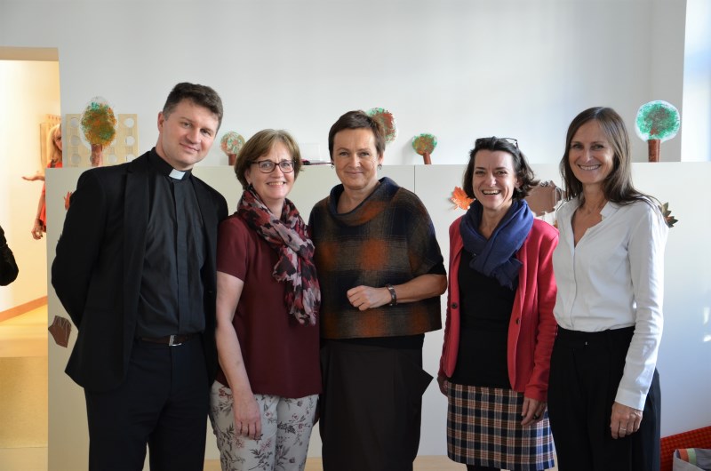 Am Freitag, 11. Oktober 2019, lud der Pfarrkindergarten Neuottakring zur Erntedank- und Wiedereröffnungsfeier ein. Viele Gäste, darunter die stellvertretende Bezirksvorsteherin Eva Weißmann und Vertreterinnen der St. Nikolausstiftung, feierten mit. Pfarrprovisor Lyubomir Dutka segnete die neuen Räumlichkeiten und mit großer Begeisterung wurden die neuen Gruppenkreuze in den Räumen angebracht.