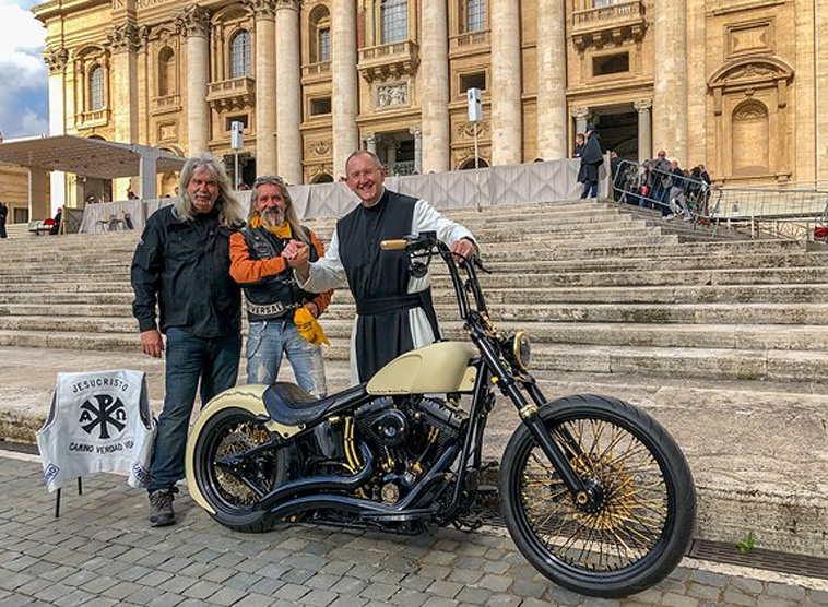 Die von Franziskus in Rom gesegnete und signierte Spezialanfertigung hatten die "Jesus-Biker" aus Hettstadt bei Würzburg in Auftrag gegeben.