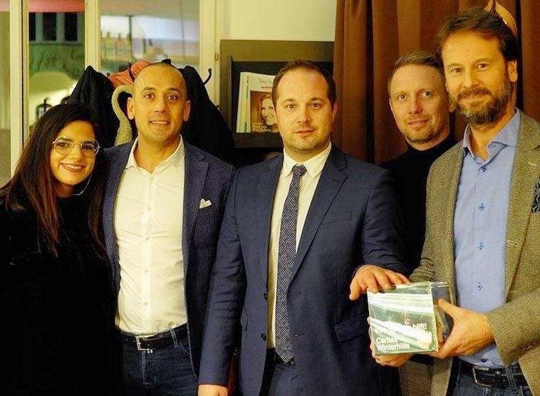 Die „Cottage-Familie“ mit Bezirksvorsteher Daniel Resch (Mitte) und Prim. Dr. Manfred Greher von den Wiener Ordensspitälern.