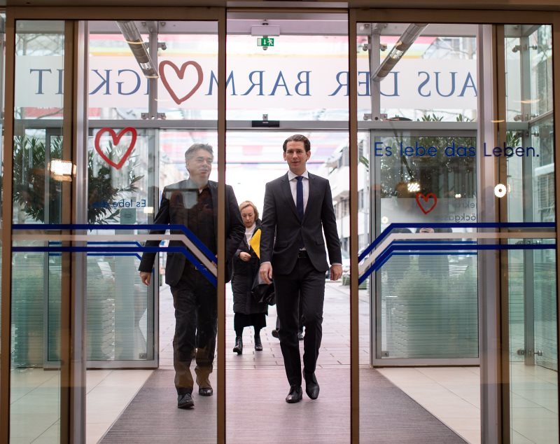 Kanzler Kurz, Vizekanzler Kogler und Sozialminister Anschober im Wiener Haus der Barmherzigkeit: Zielsteuerungskommission und Schulversuch als erste Schritte. Caritas-Präsident Landau sieht "ermutigendes Signal" und pocht auf gemeinsames Vorgehen von Bund, Ländern und Versicherungen.
