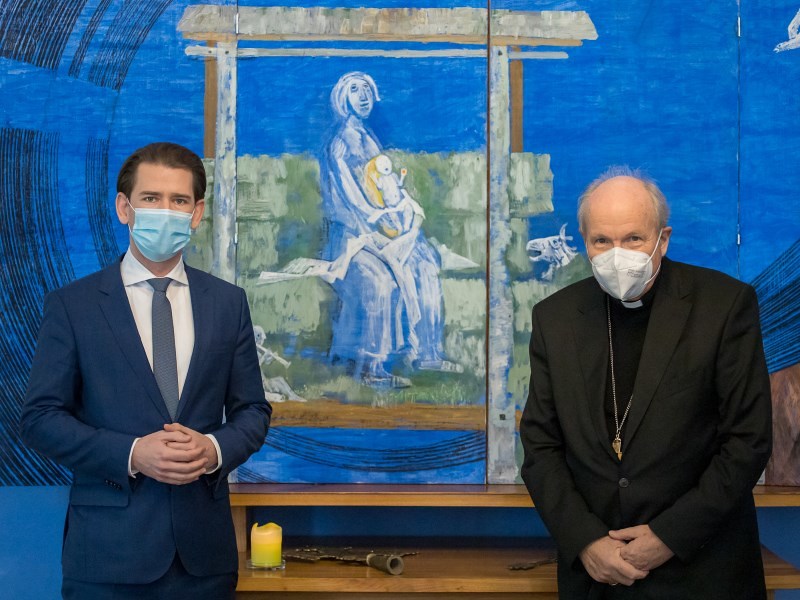 Musikalisch begrüßt wurde der Regierungschef durch ein Bläserquartett von kirchlichen Mitarbeitern, die im Hof des Bischofshauses in gebotenem Corona-Abstand Weihnachtslieder darboten. Im Anschluss zogen sich Kardinal Schönborn und Bundeskanzler Kurz zu einem rund eineinhalbstündigen Gespräch in die Räumlichkeiten des Palais zurück.
