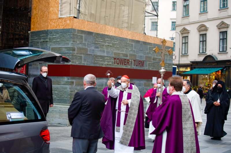 Gemeinsam mit Schönborn standen auch der Linzer Bischof Manfred Scheuer und Domdekan Rudolf Prokschi dem Trauergottesdienst vor. Weitere Mitfeiernde waren u.a. die Bischöfe Maximilian Aichern und Helmut Krätzl, der griechisch-orthodoxe Metropolit Arsenios (Kardamakis), der serbisch-orthodoxe Bischof Andrej (Cilerdzic), der koptische Bischof Anba Gabriel, der armenische Bischof Tiran Petrosyan, der altkatholische Bischof Heinz Lederleitner, der anglikanische Bischofsvikar Patrick Curran, der syrisch-orthodoxe Chorepiskopos Emanuel Aydin und der rumänisch-orthodoxe Bischofsvikar Nicolae Dura und der frühere evangelische Superintendent Hansjörg Lein. Der russisch-orthodoxe Bischof Aleksij konnte kurzfristig aus gesundheitlichen Gründen nicht kommen.